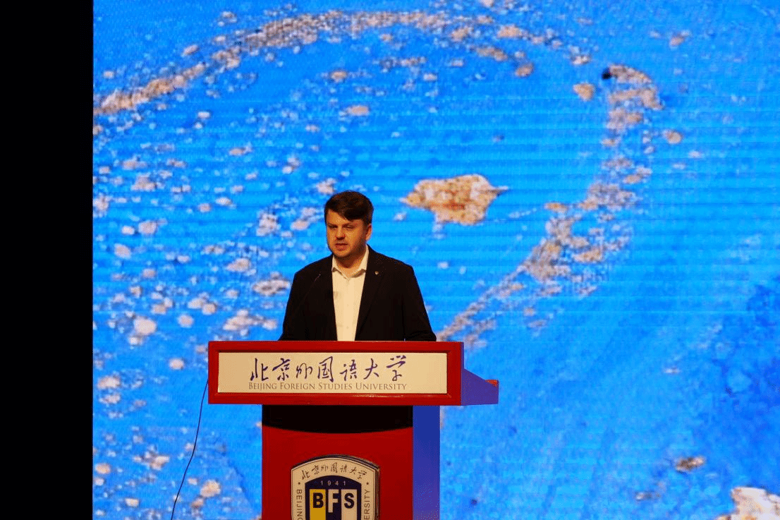 北京俄罗斯文化中心执行主任亚历山大·古普托尔先生受邀出席并致辞,对大赛的举办表示热烈祝贺,强调在“中俄教育交流年”这一时间节点中语言文化交流对促进中俄友好的重要意义,表达了对参赛选手从比赛中收获知识、提升语言技能以及加深文化理解的期待。